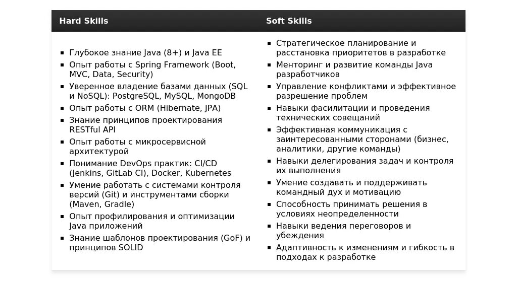 Адаптация раздела "Навыки" Java TeamLead