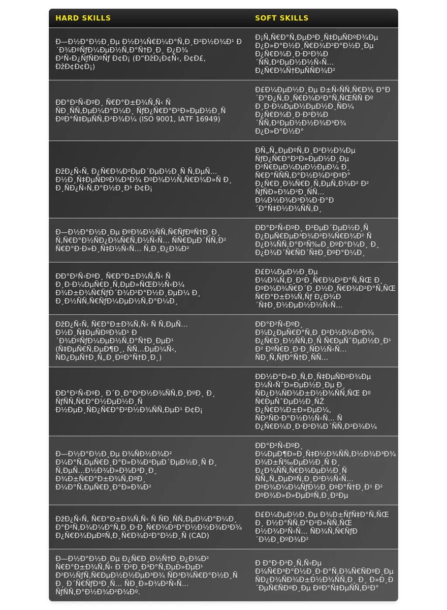 - Для вакансий, связанных с управлением: "руководство коллективом", "организация работы", "планирование технического обслуживания", "контроль качества", "оптимизация затрат".