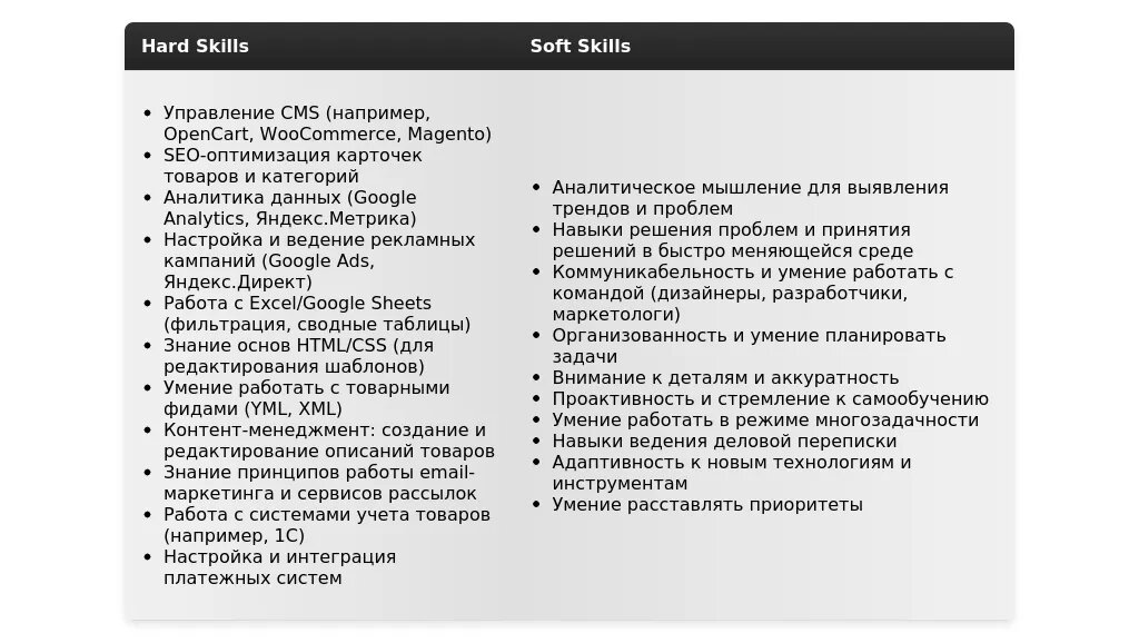 На что делать акцент: Образование, стажировки (даже если они не напрямую связаны с e-commerce), волонтерский опыт (если он демонстрирует ваши навыки).