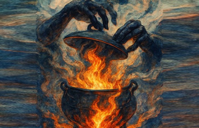 Уже во время погружения в канале сессии Л. почувствовала напряжение в нижней части живота, тяжесть в груди и вязкость энергий во всем теле. Жгучее ощущение в области 4-й чакры. Углубившись в ощущения в груди, Л. почувствовала образ котла, накрытого тяжелой крышкой; в котле кипит жидкий огонь. «Огонь», когда вырывается из-под крышки, порождает эмоции раздражения и злости. Это «раздражение» изначально не направлено на кого-то, оно просто есть, и ему нужна цель. Крышка на котле - “это мои усилия по контролю эмоций, из поля головы идут импульсы прижимать крышку к котлу, не дать той энергии вырываться наружу. Раздражение и злость в первую очередь направляются на меня, на недовольство своей жизнью, затем уже на брата и всех остальных”