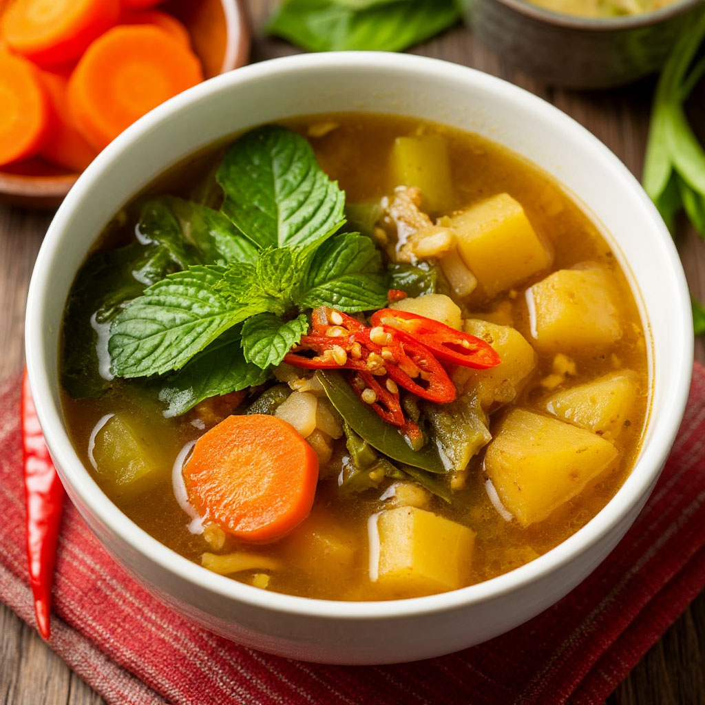 Саюр-Асем: Индонезийский Овощной Суп – Гармония Вкуса и Пользы в Экзотической Тарелке