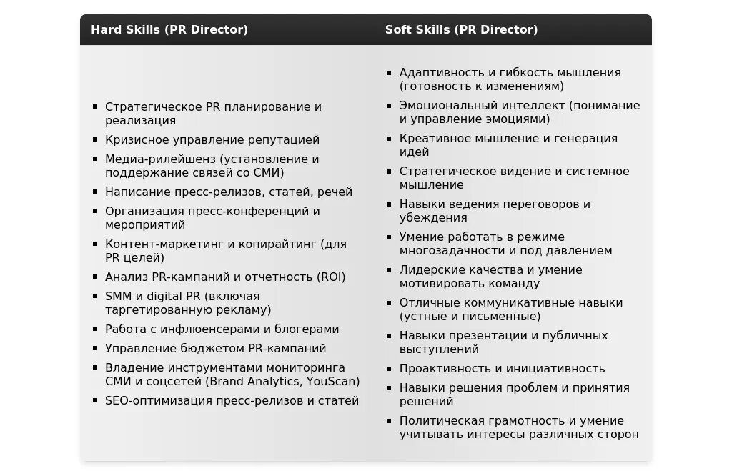 Ключевые навыки и компетенции, релевантные для позиции PR-директора.