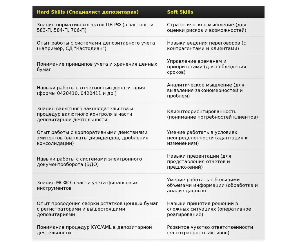 Адаптация раздела "Навыки" для специалиста депозитария