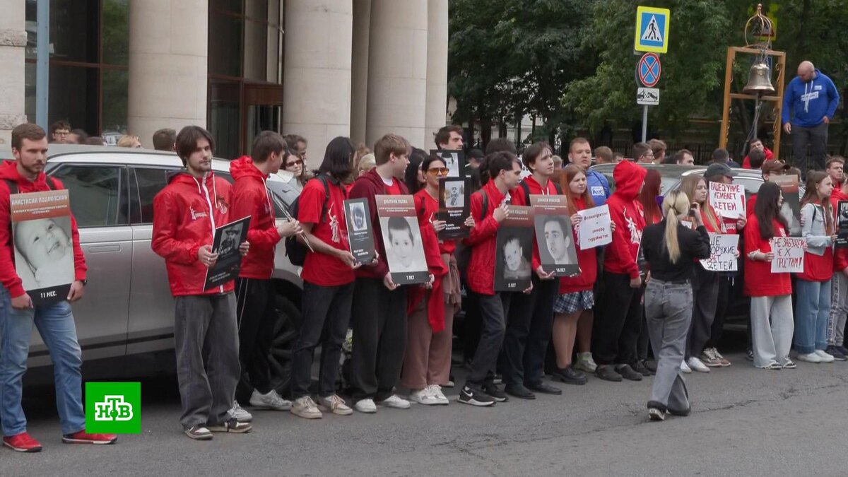[ Смотреть видео на сайте НТВ ] Сотни человек приняли участие в акции у зданий посольств западных стран в Москве. Организаторами акций протеста стали «Молодая гвардия Единой России» и движение «Волонтерская рота». Пикеты состоялись у дипмиссий девяти государств, которые поставляют вооружение Киеву. В частности, у здания британского посольства активисты установили колокол: в него ударили 60 раз в память о детях, которые погибли или получили ранения в результате атак ВСУ. Аналогичные акции, которые были приурочены к Международному дню невинных детей — жертв агрессии, прошли и в Санкт-Петербурге: там пикетировали генконсульства Германии и Норвегии. [ Смотреть видео на сайте НТВ ]