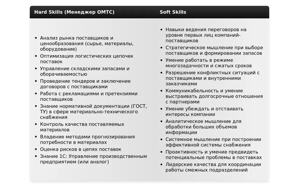 Если вы являетесь ведущим специалистом или руководителем отдела ОМТС, сделайте акцент на своей экспертизе, управленческих навыках и масштабе реализованных проектов. Покажите свою ценность для компании как стратегического партнера в области закупок и снабжения.