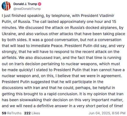 And Trump's post on Putin call is back up