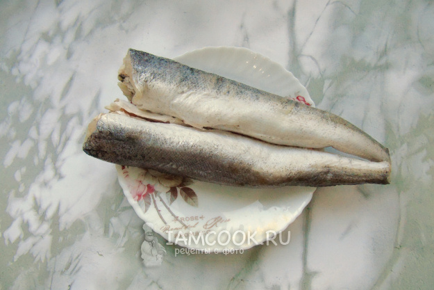 Берём 600 г хека. Филе готовим вручную: разрезаем тушку вдоль хребта, вытаскиваем кости, срезаем шкурку. Важно не оставлять кожу – она даёт грубую структуру, портит фарш. Всё, рыба готова к работе.