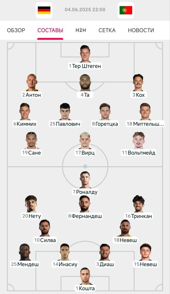 Составы на 1/2 финала Лиги наций❗️ Португалия — Германия | 22:00 @мировой Футбол