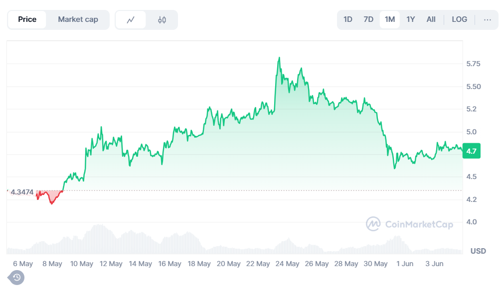 Общая оценка 8/9, по моей стратегии добавляю монету в портфель на 1200$. Вернее, буду следить за монеткой, и начну покупать, когда цена спустится до 4,3$.