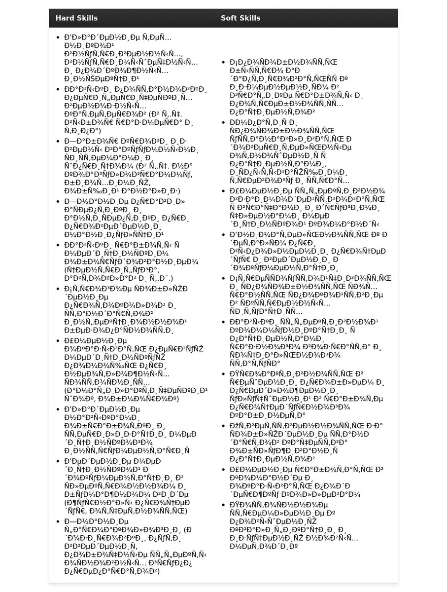 - Непроверенная информация: Не указывайте навыки, которыми вы не владеете в совершенстве.