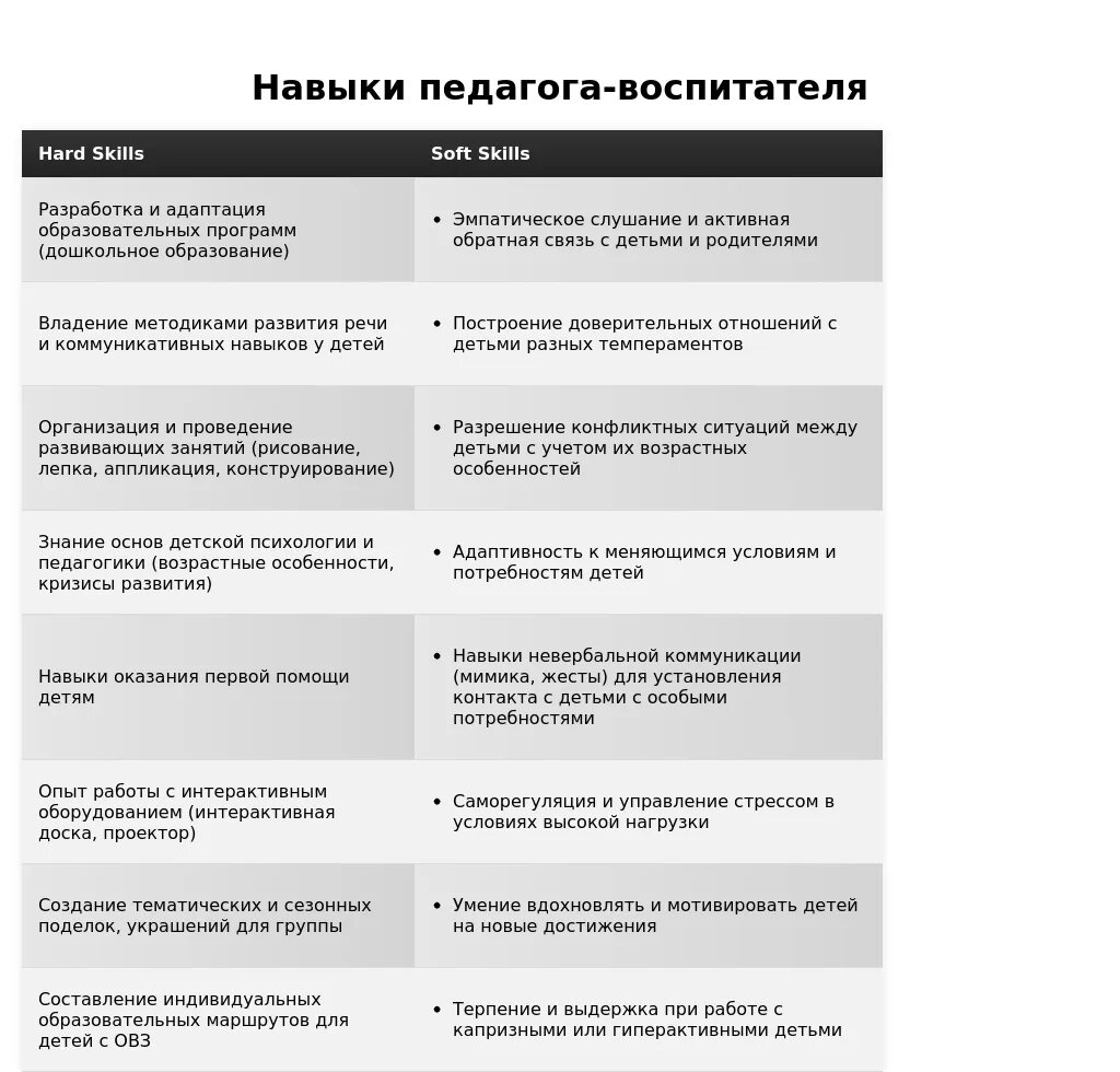 На этой странице вы найдете исчерпывающее руководство по составлению резюме педагога-воспитателя, которое включает: