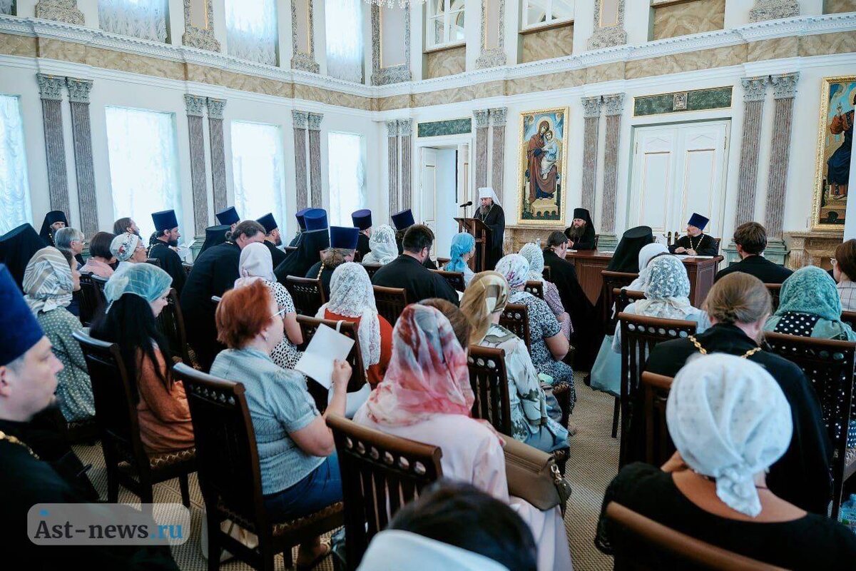 К 100-летию со дня окончания земного пути святителя Тихона, патриарха Московского и Всея Руси, в Астраханской митрополии состоялась конференция «Святитель Тихон. Духовные связи с Астраханью». В духовно-просветительском мероприятии приняли участие священнослужители, музейщики, педагоги и общественные деятели. Торжественное собрание возглавили митрополит Астраханский и Камызякский Никон и епископ Ахтубинский и Енотаевский Матфей. Владыка Никон обратился с епископским словом к присутствующим: «Сегодня мы не только вспоминаем жизненный путь Патриарха Тихона, но и осмысляем его заветы. Его подвиг – это не только исторический факт, но и духовный ориентир для всех нас. В условиях жесточайших гонений он сумел сохранить Церковь как корабль спасения, не поступившись ни верой, ни любовью. Вспоминая святителя Тихона, мы прикасаемся к живому преданию веры. Его жизнь учит нас, что даже в самые тёмные времена свет Христовой истины нельзя погасить. А его связь с Астраханью напоминает нам о том, что ка