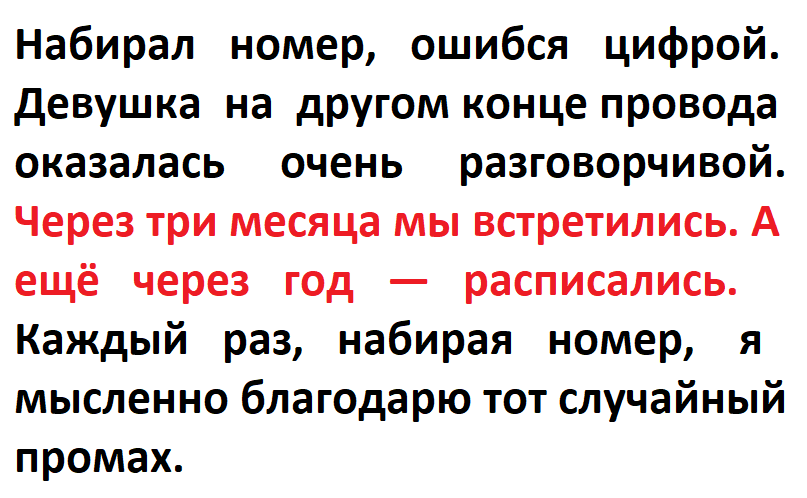 Всё просто: проспал, опоздал, выбежал без кофе, злился. И именно в этой спешке уронился телефон. Поднять его помогла девушка, шедшая мимо. Мы разговорились. Теперь мы женаты уже третий год. А я до сих пор не знаю, благодарить ли будильник, который не сработал, или своё хроническое опоздание.
