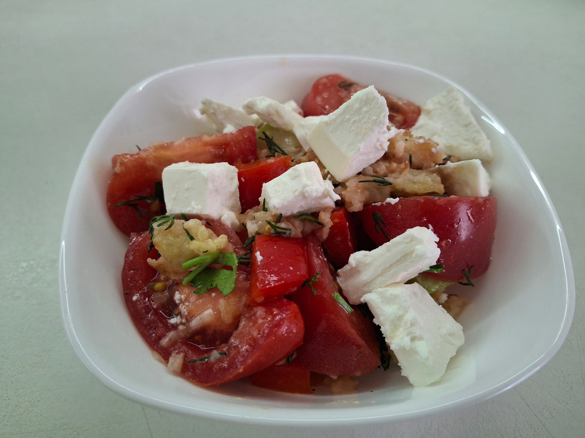 САЛАТ с жареными кабачками, свежими овощами и брынзой. Когда надоел простой салат из помидор и огурцов, готовлю этот салат.