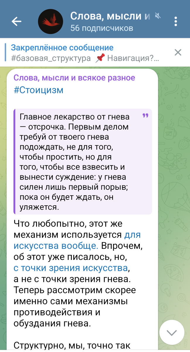 Здравствуйте, наши дорогие читатели. Мы бы хотели показать вам текст одного из выпускников нашего курса. Все его тексты собраны в отдельную подборку, которая называется "О стоицизме". ** "Главное лекарство от гнева — отсрочка. Первым делом требуй от твоего гнева подождать, не для того, чтобы простить, но для того, чтобы все взвесить и вынести суждение: у гнева силен лишь первый порыв; пока он будет ждать, он уляжется. Что любопытно, этот же механизм используется для искусства вообще. Впрочем, об этом уже писалось, но с точки зрения искусства, а не с точки зрения гнева. Теперь рассмотрим скорее именно сами механизмы противодействия и обуздания гнева. Структурно мы, точно так же, исходя из торможения, выводим несколько приемов. 1) Сравнение. Против кого направлен гнев? Итак, нам следует воздерживаться от гнева, кто бы его ни вызывал: равный, высший или низший. Ссориться с равным – рискованно, с высшим — безумно, с низшим — унизительно. Лишь жалкие ничтожества норовят ответить укусо