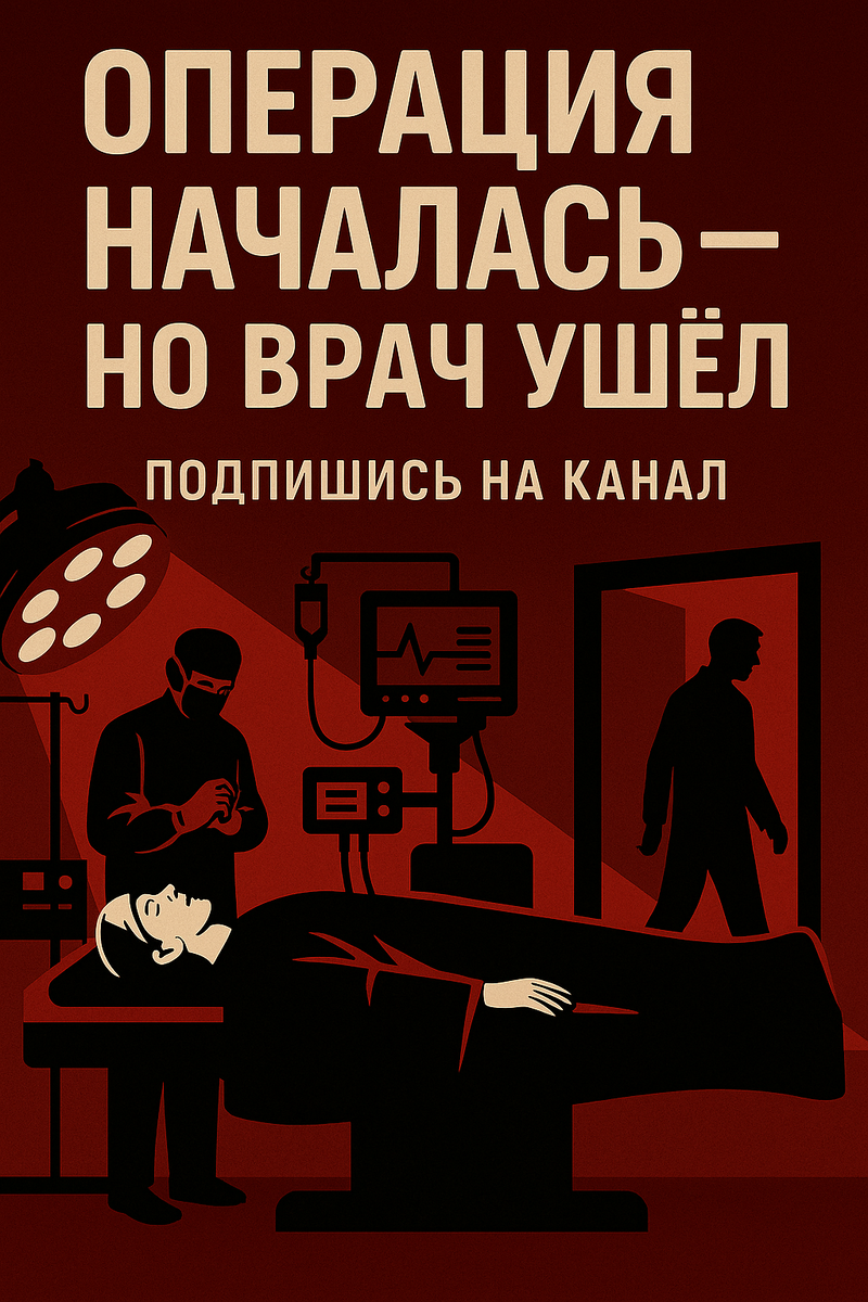 Представь: ты в предоперационной. Страх, слабость, голова тяжелеет — наркоз делает своё. Последние слова, которые ты слышишь: «Не волнуйтесь, всё будет хорошо. Сейчас заснёте.» И ты проваливаешься в темноту. А дальше — не врачи, а тени. Один держит скальпель, другой молчит. Главный хирург — тот, кто должен был резать — покинул зал. 📎 Операция продолжается. Только без него. Твоя жизнь распределена по временным слотам: 08:00 — подготовка. 08:30 — наркоз. 08:40 — разрез. 08:55 — уход хирурга на параллельную операцию. 09:20 — ординаторы доделывают. 09:50 — «успешно завершено». 10:00 — новый пациент. Хирургия — это вертикаль власти. Если звонит начальство — бросай всё. Даже если перед тобой живой человек с открытым телом. Ординаторы, которых ещё вчера учили «где печень», сегодня ведут сложные операции. Под контролем? Да. Но контроль в коридоре. Ты лежишь, раскинув руки. Сердце под наркозом стучит в пустоту. Над тобой — не хирург, а тот, кто остался в зале. Кто не должен был принимать решен