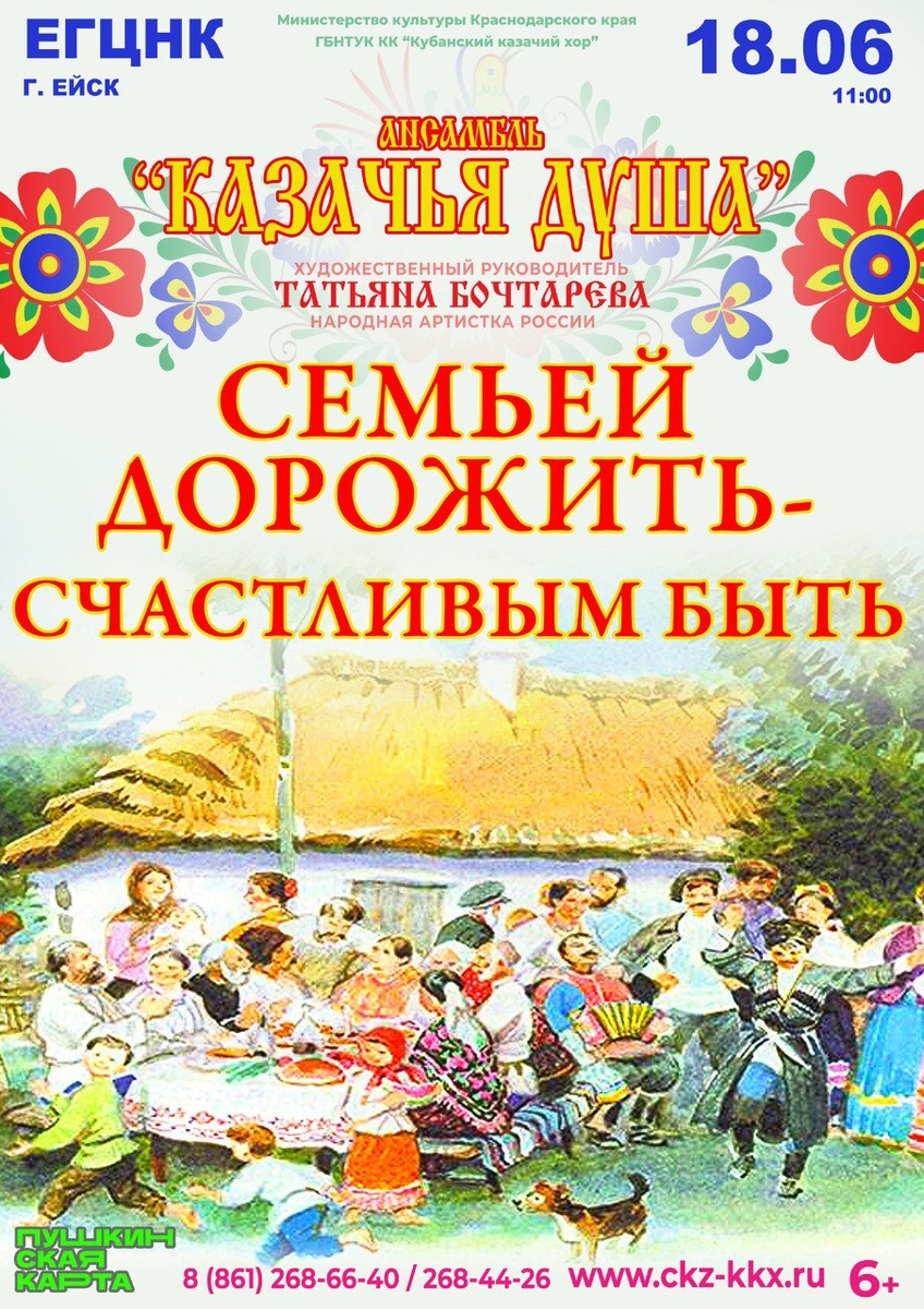 18 июня в 11:00 «Семьей дорожить — счастливым быть», концертная программа ансамбля «Казачья душа»
