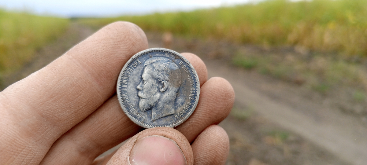 Всех приветствую друзья! Расскажу вам свою историю как я нашёл свою первую монету с портретом Императора Николая 2. Так называемое портретное серебро. Приехал я вообщем покапать на своё старое всеми выбитое место. Поля были засажены кукурузой и ходить было негде. Честно говоря даже не расчитовал что-то найти в этот день. Решил пройтись по дороге где ездят трактора обрабатывать поле. Дорога проходит прямо по фундаментам давно сгинувшей деревни. И вот сигнал на звук как крышка от алюминиевой банки. И неожиданно вылетает прекраснейшая монета, мечта любого кладоискателя)) Радости моей не-было предела. Всем комрадам желаю найти свой заветный клад. Я понял в тот момент не зря говорят "Кто ищет тот всегда найдёт" Всем удачи на копе!))