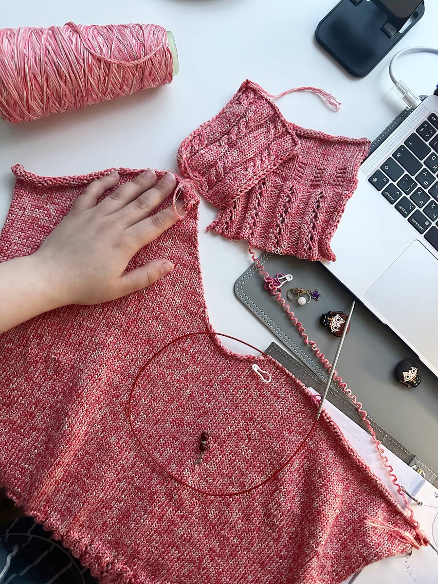 Итак, у меня остаток в 58 гр, два образца, один из которых уже пошел в ход. А мне нужно довязать перед, сделать обвязку горловины и ещё рукава связать. Что-то дело попахивает перевязом 🤔 что думаете?