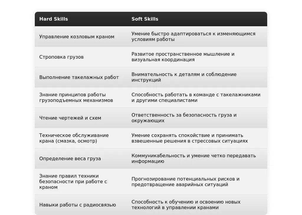 В 2025 году, помимо базовых навыков управления краном, работодатели особенно ценят: