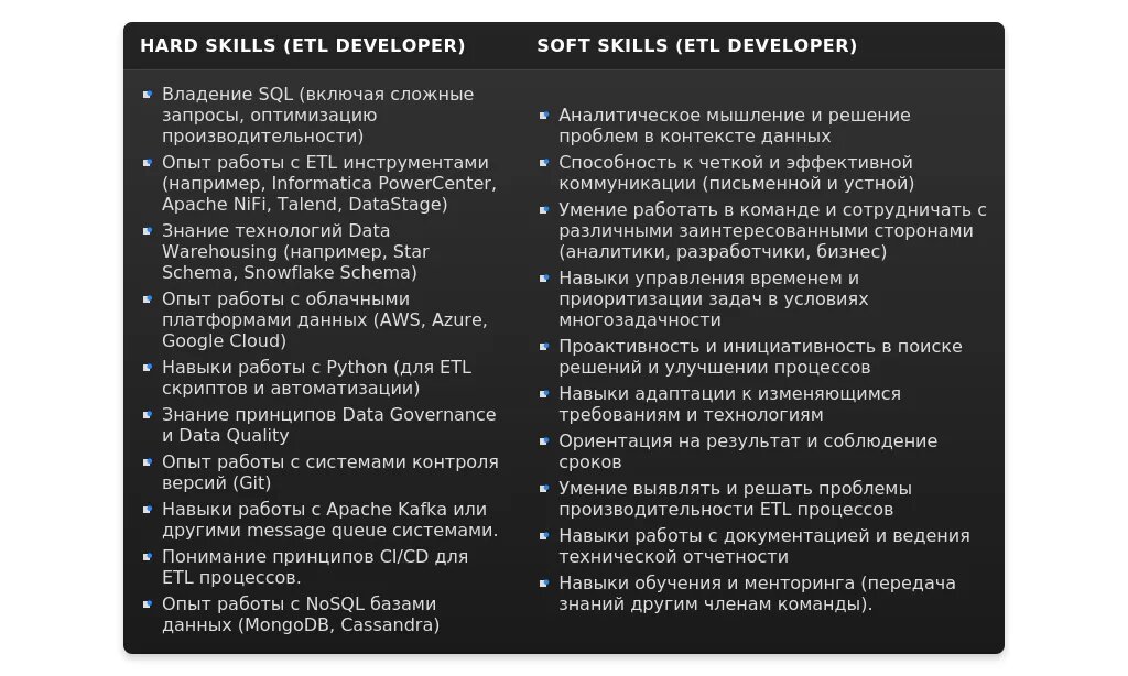 Адаптация раздела "Навыки" ETL Developer
