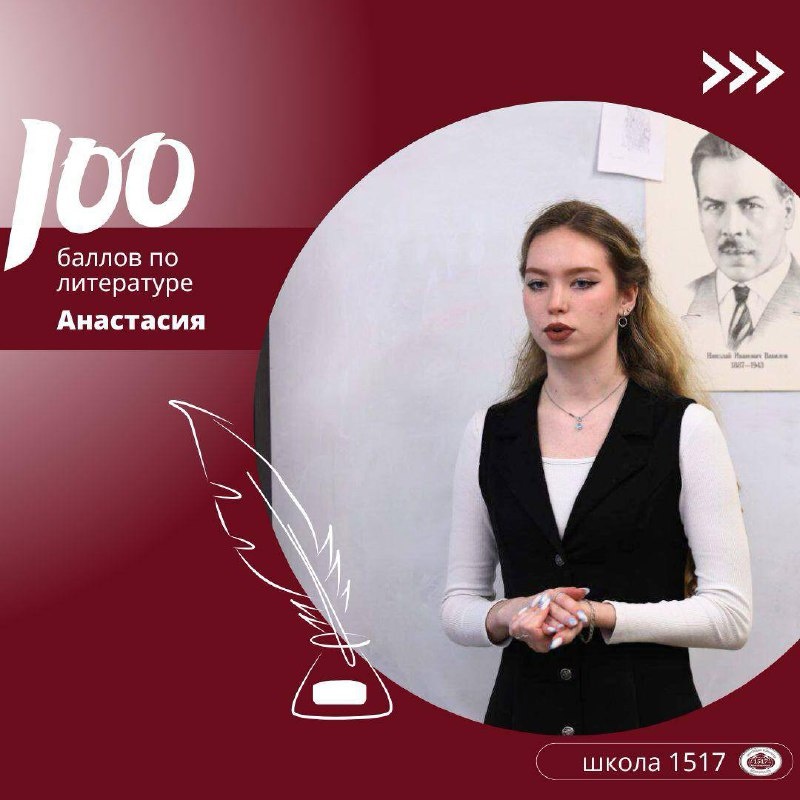 🎉 Поздравляем ученицу #школа1517, Анастасию, с потрясающим результатом на ЕГЭ по литературе — 100 баллов! 🚀