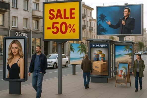 - Наружная реклама (билборды, сити-форматы и медиа-фасады)