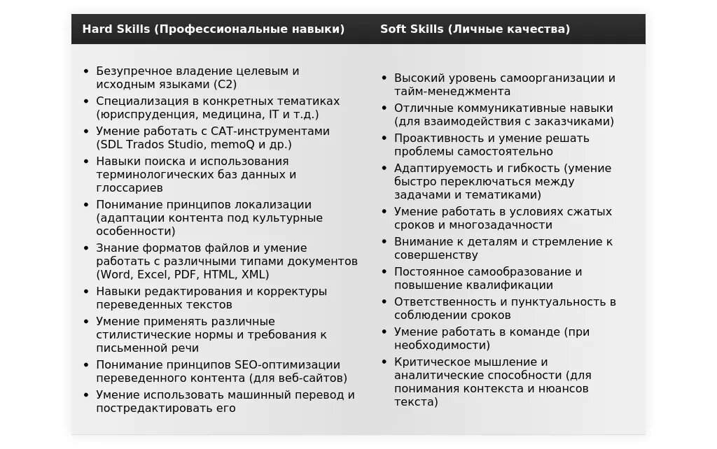 - Специализация: **технический перевод**, **юридический перевод**, **медицинский перевод** и т.д.