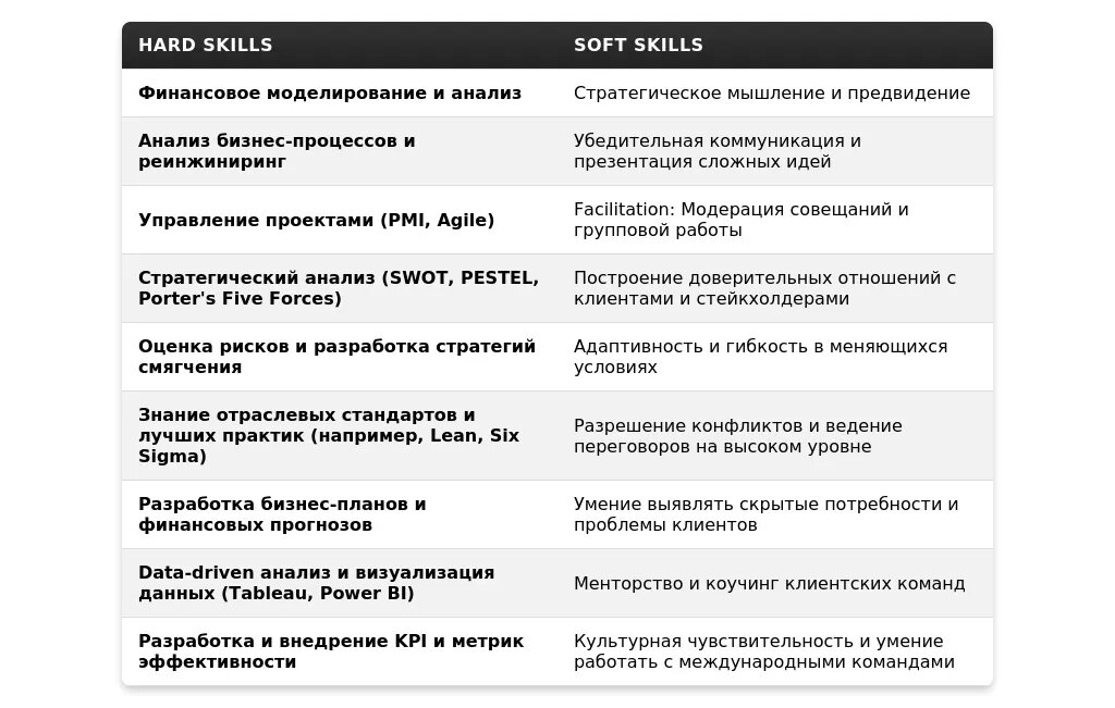- Старший бизнес-консультант / Ведущий бизнес-консультант: Подходит для опытных специалистов с глубокими знаниями в определенной области и опытом управления проектами.