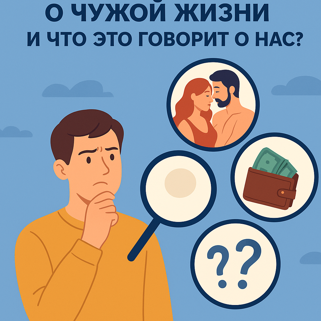 Ты когда-нибудь ловил(а) себя на мыслях вроде: «А как у них в семье?», «Интересно, какой у них секс?», «Как у них с деньгами, везёт ли им?» Эти мысли могут приходить спонтанно — в метро, в социальных сетях, на работе, среди друзей. Иногда они даже вызывают внутреннее раздражение: «Зачем мне это знать? Почему меня это волнует?» Ведь логично — у каждого своя жизнь, и вроде как должно быть всё равно. Но давай посмотрим глубже: почему мы вообще думаем о других — и почему это может быть важно? Сравнение с другими — один из базовых способов, с помощью которых человек ориентируется в мире. Мы смотрим по сторонам, чтобы понять: “Я на правильном пути? А как у других — лучше или хуже?” Эта привычка идёт ещё с древних времён, когда выживание зависело от того, как ты соотносишься с другими членами группы. Сейчас она осталась, но проявляется в мыслях о зарплате соседа, сексе подруги или успехе коллеги. 🧠 Суть не в зависти, а в ориентирах. Это способ понять, где ты и куда идти дальше. Иногда инте