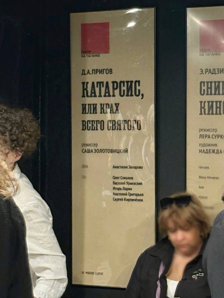 5 и 6 июня 2025 года на Малой сцене Театра на Таганке состоится премьера спектакля «Катарсис, или Крах всего святого» режиссёра Саши Золотовицкого по одноимённой пьесе Дмитрия Александровича Пригова. Сегодня побывала на пресс показе и эмоции переполняют! Основная линия постановки - абсурд, в его лучшем, творческом смысле: противоречие и нелепость «упакованные» в форму спектакля. О чем спектакль: Известная актриса, покинувшая театр после долгих лет службы, приходит на встречу с ключевой фигурой московского концептуализма. Провокационный, ироничный и многоликий Дмитрий Александрович Пригов предлагает ей роль и увлекает в акцию, из которой нет выхода. Бытовые драмы превращаются в фантасмагорию, границы между игрой и реальностью стираются. Автор и режиссер подумали, что круто было бы, чтобы в конце спектакля было настоящее кровавое убийство. Мне кажется, это многое говорит об этих людях 😂 Они мне сразу близки по духу) Это комедия с глубоким философским смыслом, то, за что мы и любим и