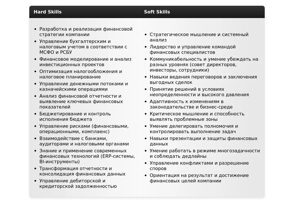 - Опишите свои сильные стороны (например, оптимизация налогообложения, бюджетирование, финансовый анализ).