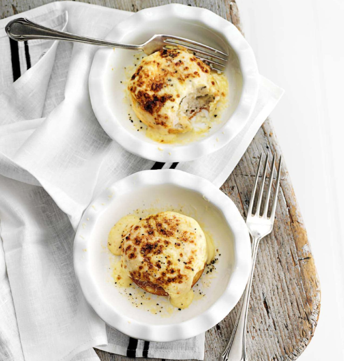 Время приготовления — 1 час. 6 порций. Уровень сложности — лёгкий. Поскольку это суфле выпекается дважды, вы можете запечь первую часть до прихода гостей, а затем добавить соус и повторно выпекать незадолго до подачи на стол. Ингредиенты: - 250 миллилитров молока - 1 маленькая мелко нарезанная луковица - 1 лавровый лист - 3 горошины перца - 50 граммов сливочного масла + ещё немного для смазывания посуды - 5 столовых ложек муки - 1 нарезанный маленький пучок петрушки - 1 яичный желток - 200 граммов раскрошенного мягкого козьего сыра без корочек - 6 яичных белков - 25 граммов натёртого Пармезана Для приготовления соуса: - 300 миллилитров очень жирных сливок - 50 граммов раскрошенного мягкого козьего сыра без корочек - 100 граммов твёрдого сыра с ореховым вкусом (сыр с вкраплениями орехов) Нагрейте духовку до 190 градусов. Положите в молоко лук, лавровый лист и перец и доведите почти до кипения, но не до кипения. Сделайте загуститель, растопив масло в сковороде, добавив муку. Подержите ма