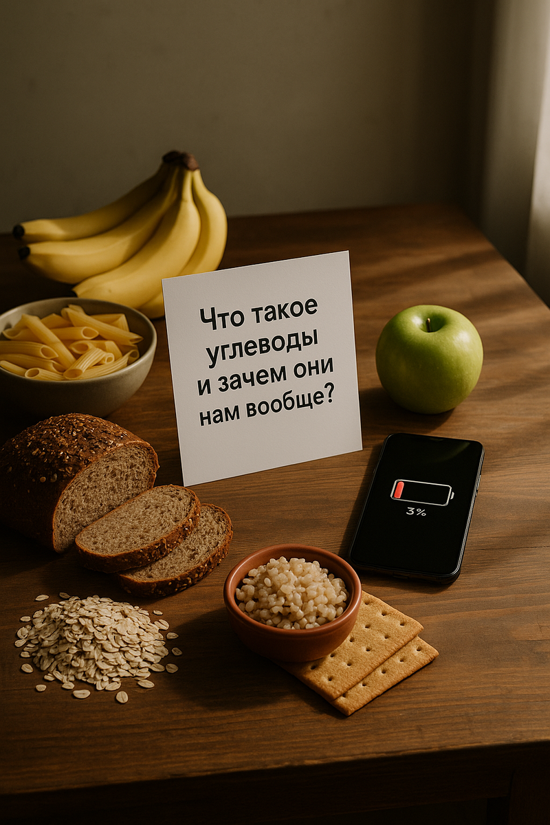 Сегодня хочу затронуть тему, которая всплывает чуть ли не на каждой встрече с моими клиентами. Да и сама когда-то задавалась этим вопросом. Звучит примерно так: «Углеводы – это вредно?», «А если я на диете – их вообще можно?» «В чём разница между простыми и сложными углеводами и почему все про них говорят?» Вот давайте спокойно, по-человечески и без заумных слов всё разложим по полочкам. Что такое углеводы и зачем они нам вообще? Прямо без научных терминов: углеводы – это наша батарейка. Это та энергия, которая помогает нам вставать с утра, думать, двигаться и быть в настроении. Представьте себе телефон, у которого зарядка на 3%. Вот это вы без углеводов. Когда человек не ест углеводов — он вялый, раздражительный, голова работает на «автопилоте», хочется лечь и забыть обо всём. И это не лень, а элементарная нехватка «топлива». Углеводы - они как люди, бывают хорошие, а бывают такие себе. Простые углеводы - быстро, вкусно, но ненадолго Это всё, что сладкое, вкусное, и от чего трудно о