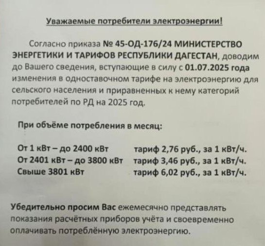 ©В соцсетях распространяют вот такие сообщения о росте тарифов в зависимости от потребления. Хотелось бы узнать, правда ли это? Если да, то на чем обосновано такое увеличение стоимости? Опубликуйте, пожалуйста, может получим комментарии от Минэнерго Дагестана." #нам_пишут Подписаться на "Черновик" 2.0 | Обратная связь: @chernovik_1_bot
