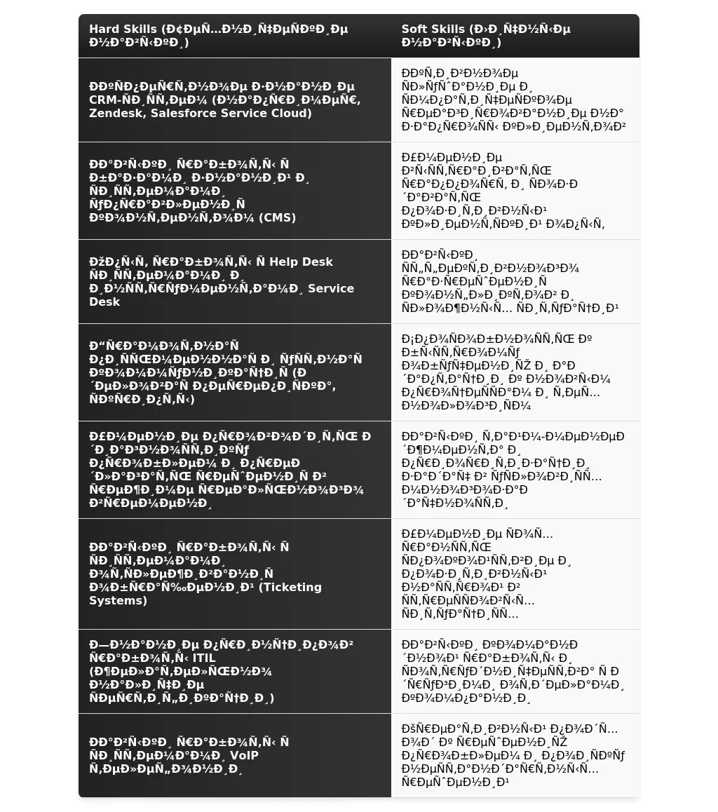 - актуальные навыки для оператора службы поддержки