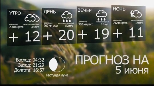 По данным Башгидромета, 5 июня на территории республики облачная погода с прояснениями. Кратковременные дожди, ночью местами сильные, в отдельных районах гроза. По юго-востоку без существенных осадков. Ветер юго-западный с переходом на северо-западный 5-10м/с, днем в отдельных районах порывы до 17м/с. Температура воздуха ночью +9,+14°, днем +18,+23°. На автодорогах ночью и утром местами туман, видимость 500-1000м. Источник https://uchaly102.ru/?p=85285