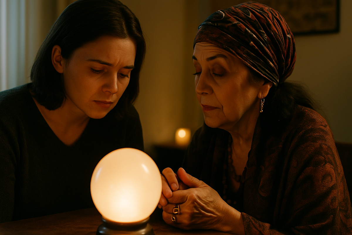 Лидия замялась, потом вошла. Внутри пахло ладаном, дымом и сушёными травами. Стены увешаны вышивками, фотографиями, старыми зеркалами. Где-то глубоко тикали часы.