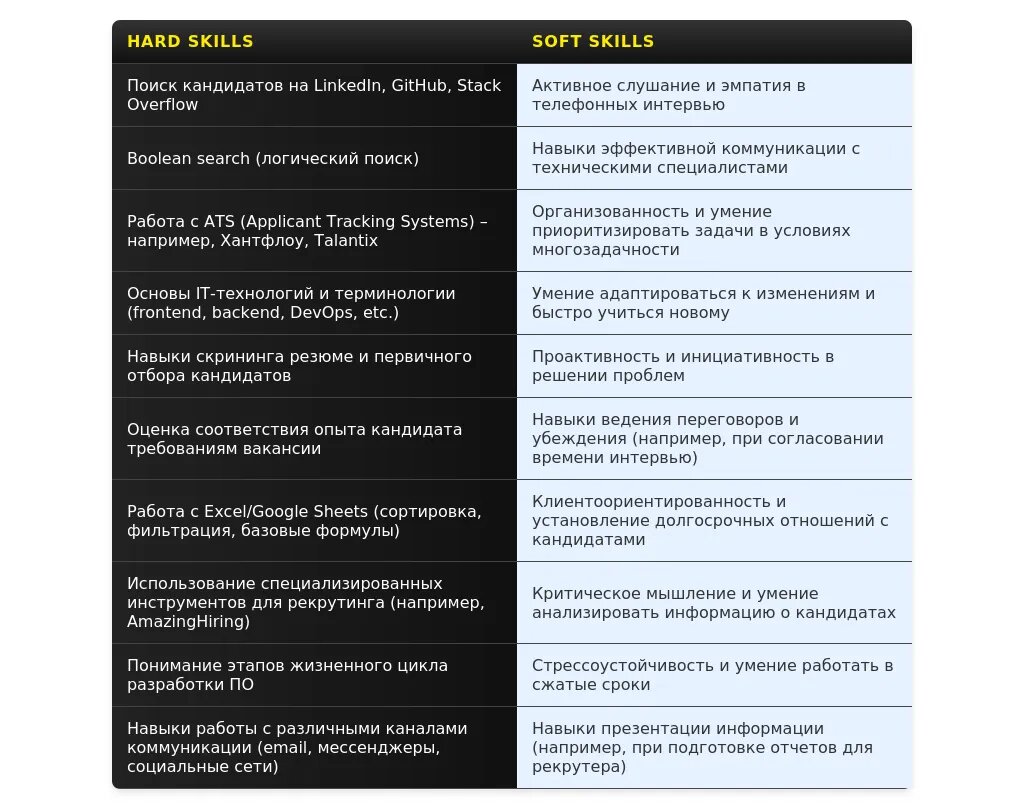 Самые важные навыки и качества, релевантные для позиции ассистента IT-рекрутера (например, коммуникабельность, внимательность к деталям, умение работать с информацией).