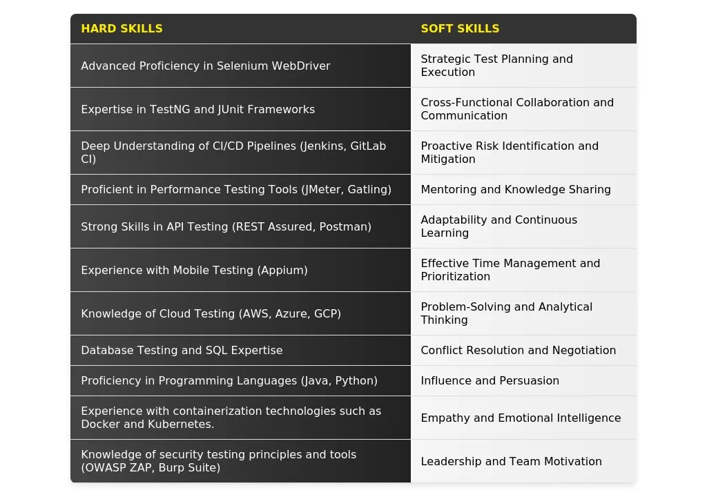 - Senior SDET (Software Development Engineer in Test) – Подходит, если вы участвуете не только в автоматизации, но и в разработке инструментов и фреймворков для тестирования.
