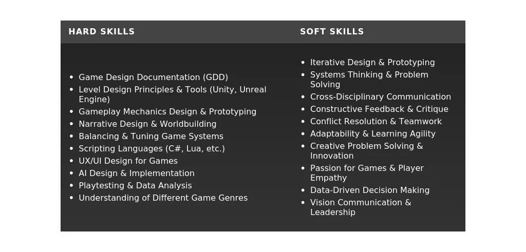 - На какие качества делать акцент: Креативность, аналитическое мышление, умение работать в команде, страсть к играм, желание учиться.