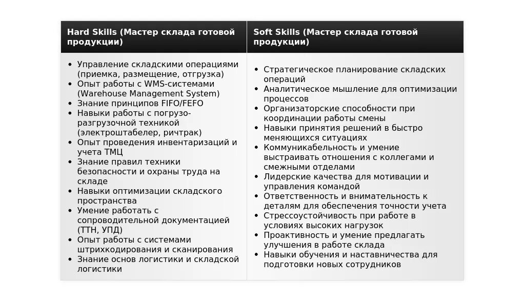 - и какие актуальные навыки мастера склада готовой продукции выделить, чтобы резюме было конкурентным.