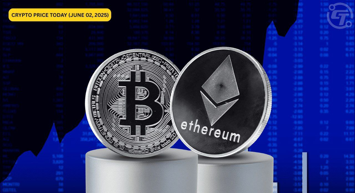 Цена криптовалюты сегодня (2 июня): биткоин упал до $103 тыс., Ethereum отскочил от $2500
