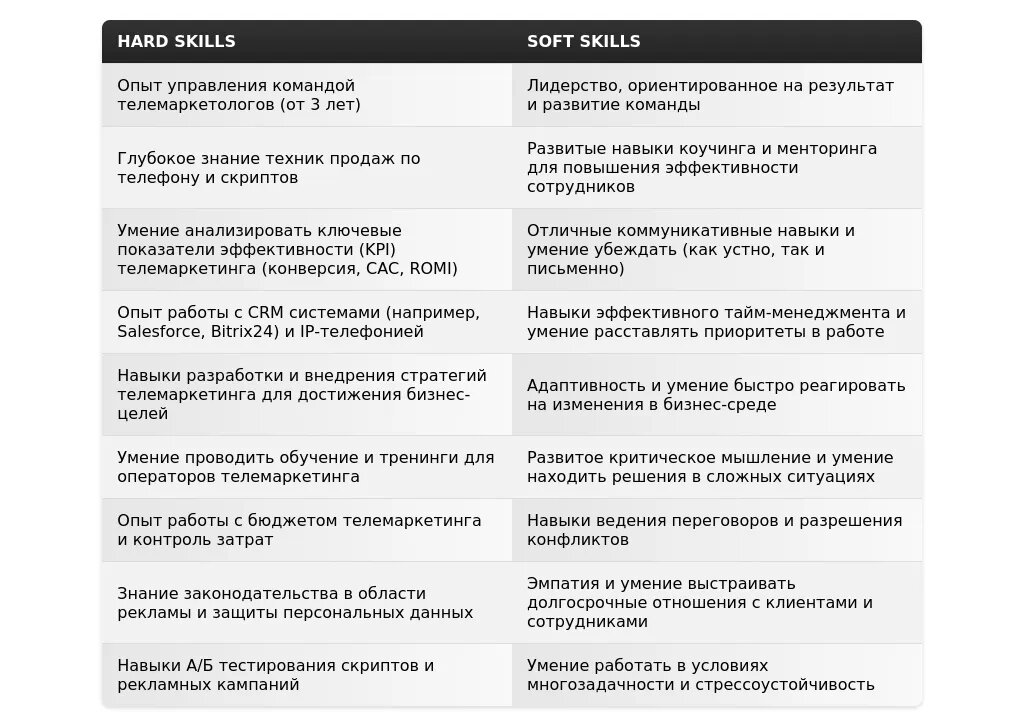 - Коммуникативные: Ведение переговоров, работа с возражениями, установление контакта с клиентами.