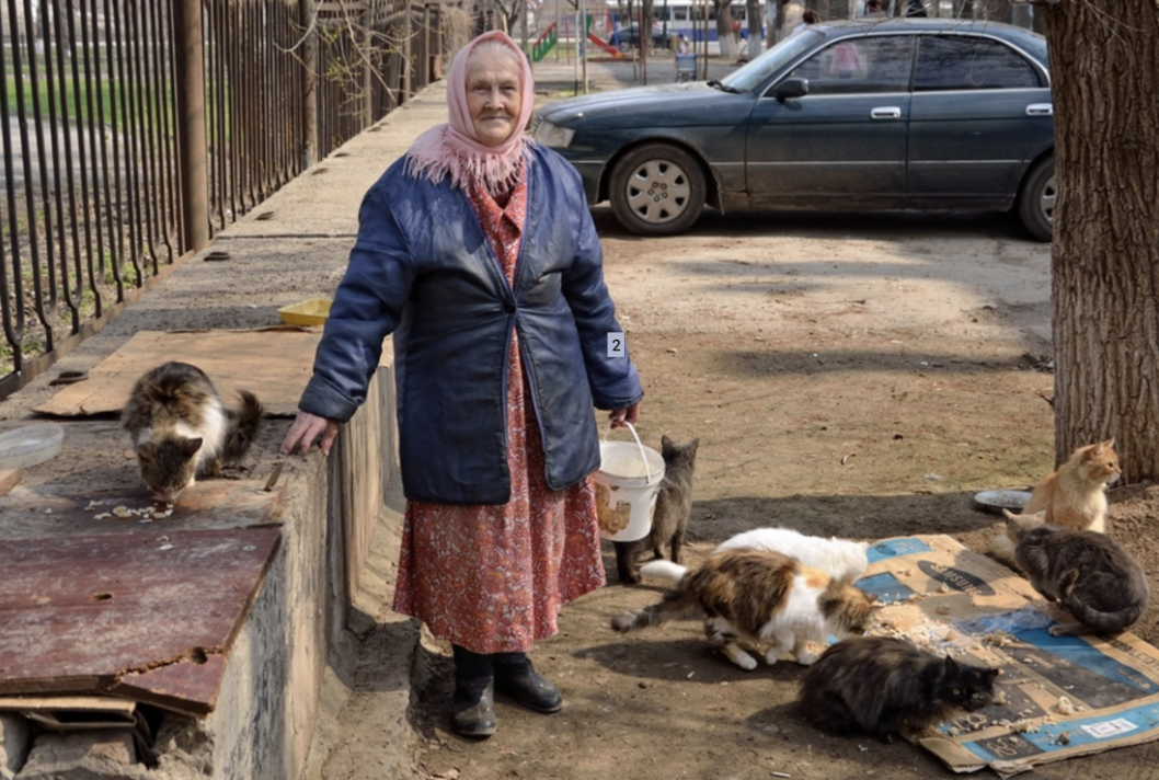 Я знаю, ты видел их. У каждого двора, у каждой многоэтажки, у каждой старой кирпичной пятиэтажки, что под грозно ободранным козырьком — там они. Стоят, опершись на палочку, с сеткой "Ашана" в руках. Там – хлебные корки. Сметанка в одноразовой крышке. Иногда – обглоданные куриные кости от «гриль в магните». А вокруг — штук семь серых, белых и полосатых. Кошки. Голодные, облезлые, но уже научившиеся не бояться ног, только тапок. Встречайте: подъездная благотворительность™️.