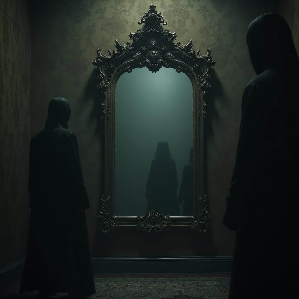 Молодая пара купила старый особняк на окраине города, чтобы начать новую жизнь. В одной из комнат они нашли огромное зеркало в резной раме. Но когда они посмотрели в него, увидели только пустоту — никакого отражения. Со временем странности усилились: в зеркале появлялись едва различимые силуэты, шепоты, которые слышались только в комнате с зеркалом, и холод, пробирающий до костей. Попытки вынести или разбить зеркало приводили к сильной головной боли и плохим снам. Местные рассказывали, что в этом доме много лет назад пропала семья, и зеркало было их связующим звеном с потусторонним миром. Пара теперь боится оставаться в особняке после заката, а зеркало всё так же молчит и манит. Что скрывает зеркало без отражения? Этот вопрос остаётся открытым.