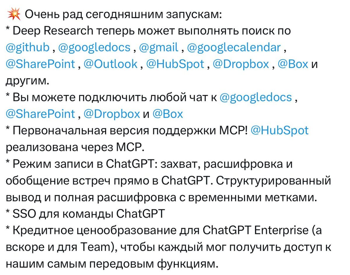 Не сказал бы я, что трансляция была разочаровывающей Да, это было разочарованием Список изменений на скрине MCP и до этого был, ну расширили коннекторы Прикольный войс мод - прям я бы сказал круто Зачем было делать целую трансляцию🫤