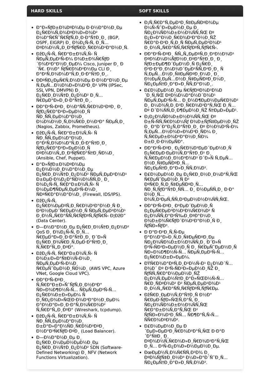 Сетевые технологии – это широкая область, поэтому важно указать, в чем именно вы являетесь экспертом. Например, вы можете специализироваться на сетевой безопасности, облачных технологиях, автоматизации сети или VoIP.