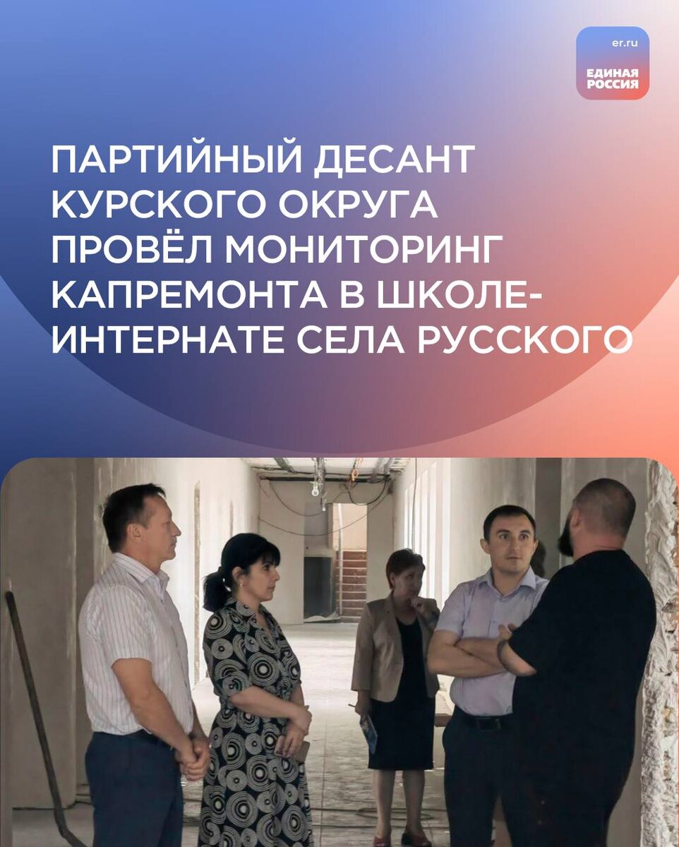 Партийный десант во главе с исполняющим полномочия секретаря Курского местного отделения партии «Единая Россия» Александром Вощановым проверил и оценил качество проводимого ремонта в «Школе-интернате» села Русского На сегодняшний день в школе обновили системы водоснабжения, канализации, отопления и электроснабжения. Внутри здания ведутся покрасочные работы. В ближайших планах – нанесение декоративной штукатурки на фасад школы, замена ограждения. Особое внимание уделяется благоустройству прилегающей территории, которое также является приоритетной задачей. Ремонтные работы образовательного учреждения ведутся с января 2024 года в рамках народной программы и регионального проекта «Модернизация школьных систем образования». В этом году работы планируются к завершению. В настоящее время дети учатся в СОШ №8 села. #ЕдинаяРоссия #НароднаяПрограммаЕР #ЕР26 #ПартийныйДесант