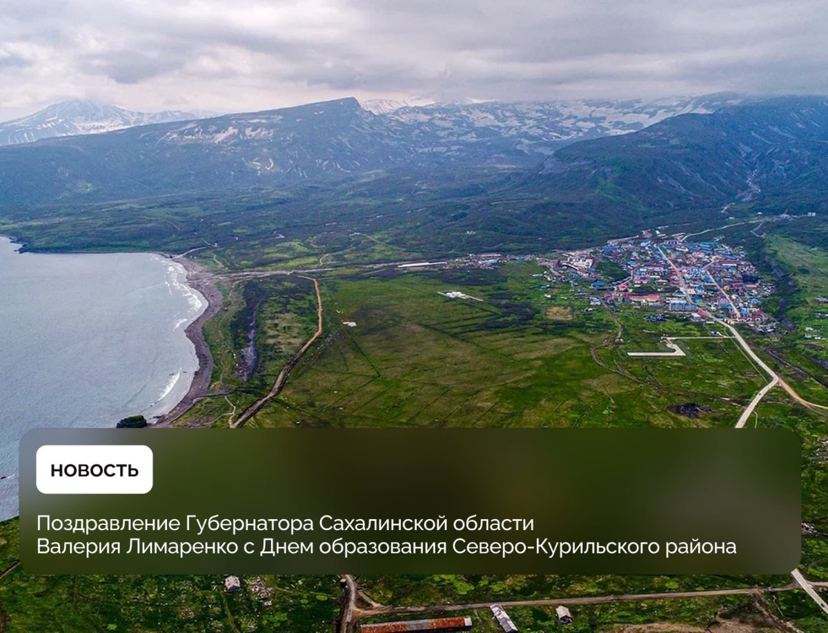 Поздравление Губернатора Сахалинской области Валерия Лимаренко с Днем образования Северо-Курильского района Уважаемые жители Северо-Курильского района! Примите поздравления с днём рождения муниципального образования! Северные Курилы – край удивительной природы, разнообразных ресурсов и – что самое важное - сильных духом людей. Ежедневно вы проявляете стойкость и единство, осваивая эту островную землю. Ваш труд, направленный на благо родного района, заслуживает глубокого уважения. Вы благоустраиваете Северные Курилы, строите дома, социальные объекты, делаете район местом комфортной жизни для себя, своих детей и внуков. Желаю вам крепкого здоровья, благополучия, новых успехов и свершений! С праздником, друзья!